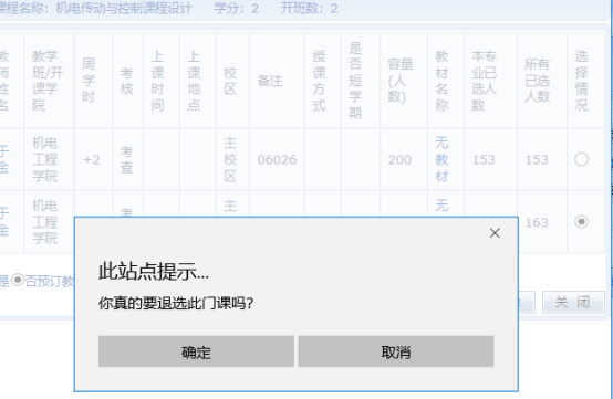 举例:15级机电工程学院,机械设计制造及其自动化专业学生,降级到16级,选《机电传动与控制课程设计》时,选错想退选,步骤如下:
