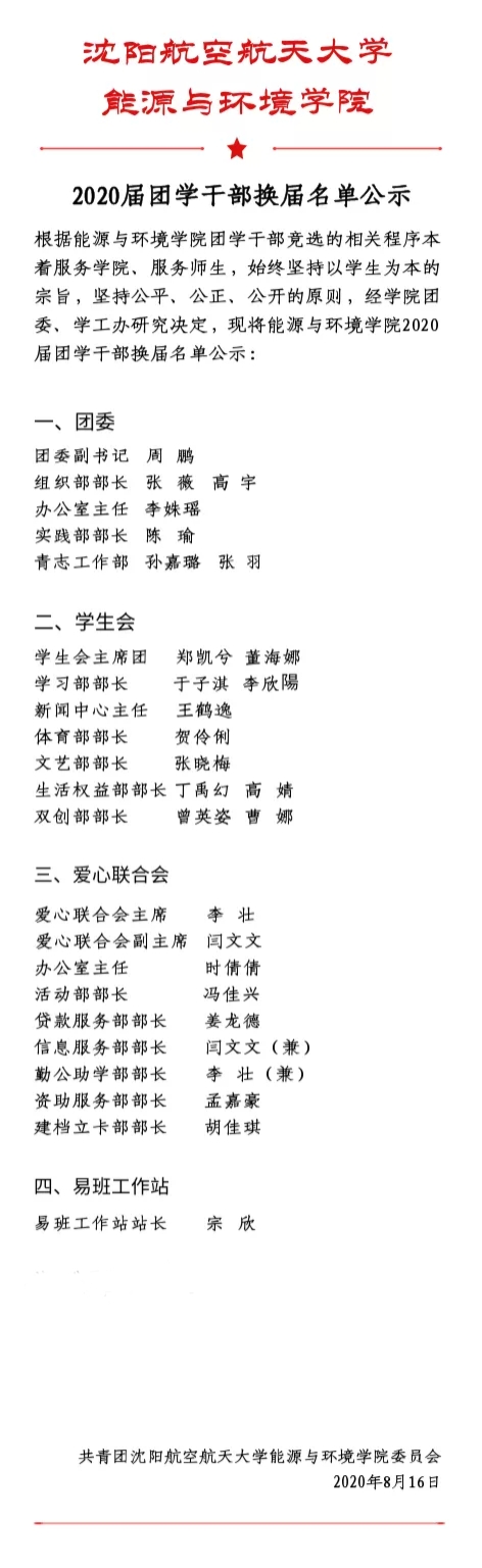 2020届团委、学生联合会及爱心联合会干部名单