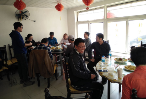 爬到山顶,望着山谷里一片片梨花的壮观景色,同事们欢呼雀跃;山脚下,大家在梨树林里留下美丽的影像,开展了梨花摄影大赛。下午两点多,大家来到了农家院,品尝着当地的美食。