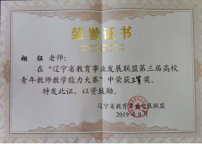 2019年9月21日,辽宁省“教育事业发展联盟第三届高校青年教师教学能力大赛”在大连大学举行。本次大赛始于6月初,历时3个月,共有来自全省21所高校的107名教师参赛。比赛分为本科组(人文社会科组、理工科组)与高职高专组,采取网络竞赛与现场决赛相结合的方式进行,共设一等奖1名,二等奖3名,三等奖6名。