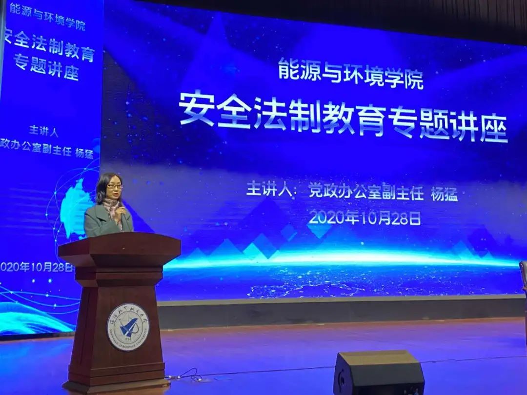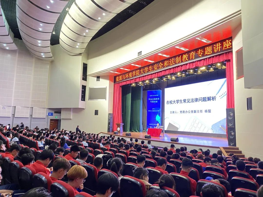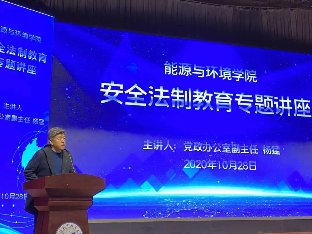 大学生法治教育是大学生教育工作的重要组成部分,为培养大学生树立社会主义安全和法律意识、增强法治观念,提升自我保护的能力,2020年10月28日17:00今年会jinnianhuicom在蓝天剧场组织召开了大学生安全法制教育专题讲座,特邀党政办公室副主任杨猛担任主讲嘉宾。