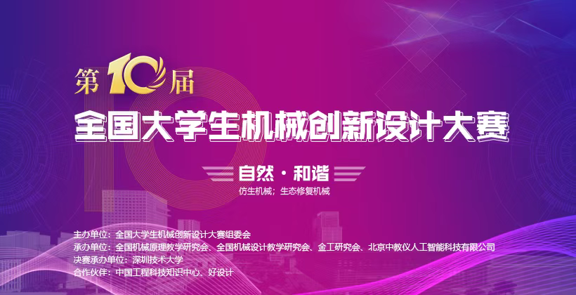 第十届全国大学生机械创新设计大赛(2022年)的主题为“自然·和谐”内容为“设计与制作1)模仿自然界动物的运动形态、功能特点的机械产品(简称仿生机械);2)用于修复自然生态的机械装置,包括防风固沙、植被修复和净化海洋污染物的机械装置(简称生态修复机械)”。