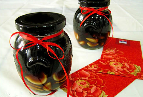 泡腊八蒜是一道主要流行于北方,尤其是华北地区的传统小吃,是腊八节的节日食俗。腊八蒜材料其实非常简单,就是醋和大蒜瓣儿。做法也是极其简单,将剥了皮的蒜瓣儿放到一个可以密封的罐子,瓶子之类的容器里面,然后倒入醋,封上口放到一个冷的地方。慢慢地,泡在醋中的蒜就会变绿,最后会变得通体碧绿的,如同翡翠碧玉。