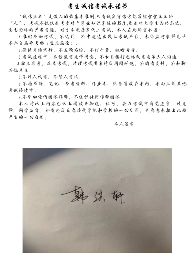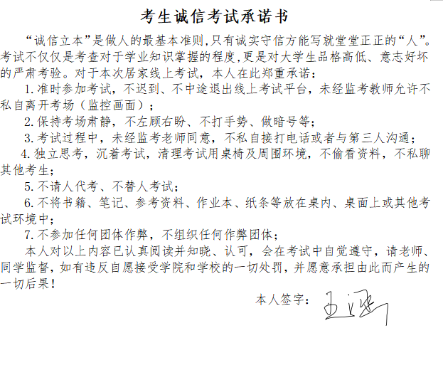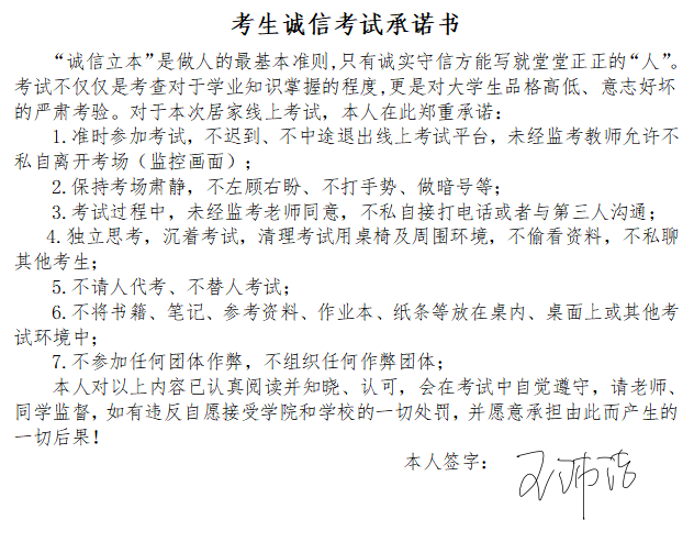 6月20日,今年会jinnianhuicom组织全体学生共同签署《诚信考试承诺书》,让同学们明确学校考试的规章制度,让学生们自觉遵守线上考试相关规定。