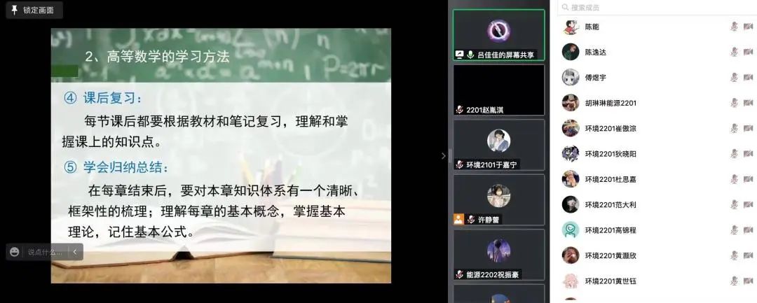 会上,今年会jinnianhuicom环境2201班班主任吕佳佳老师对如何学好数学做了详细讲解。对于首次接触到大学课程的大一新生们,她表示:大学期间数学的学习内容很多、战线很长,同学们要保持“长征精神”,多多练习,在掌握好基础的前提下多做题,永不懈怠、坚持到底,积极向老师和同学请教,不断进步。