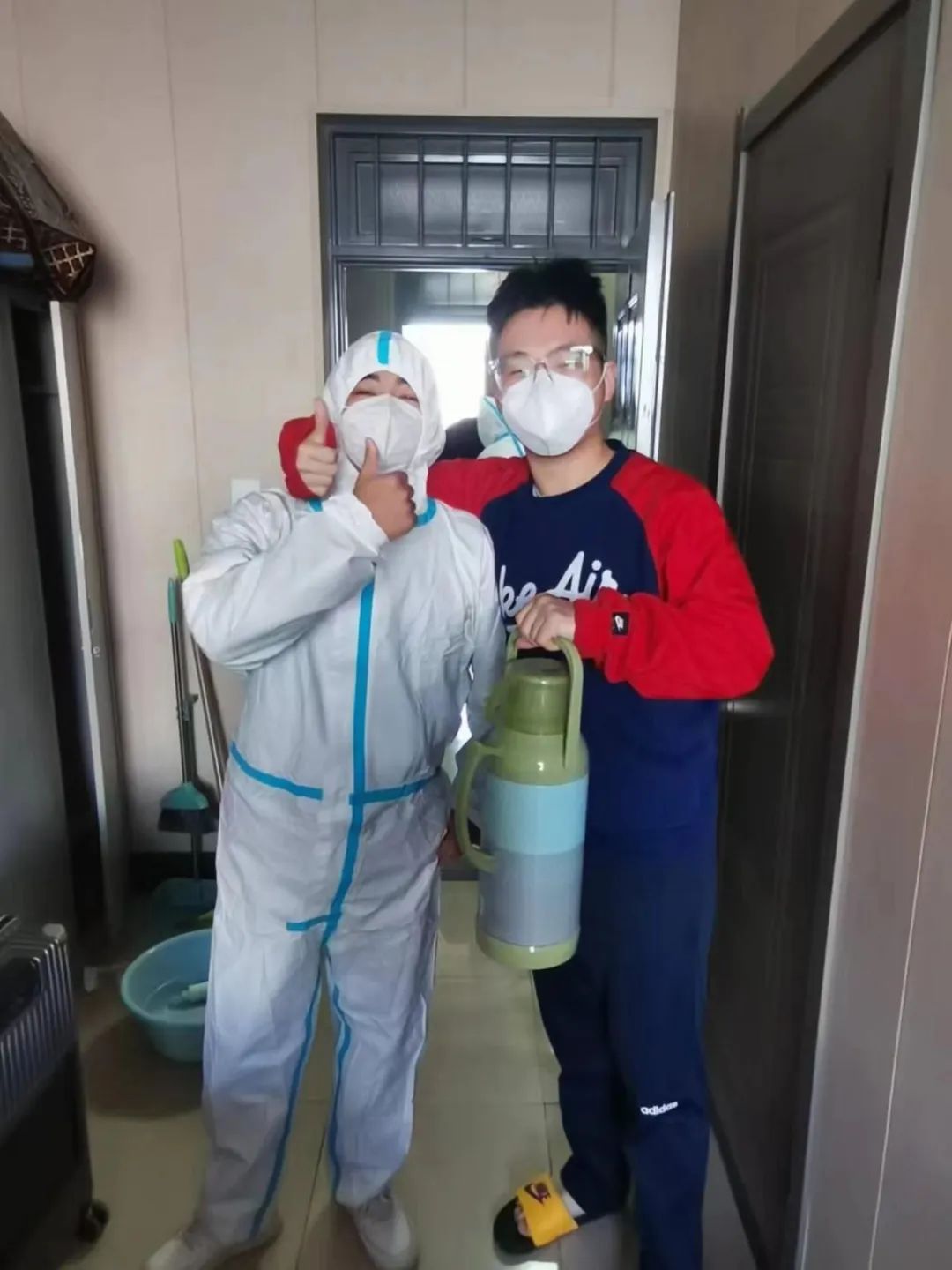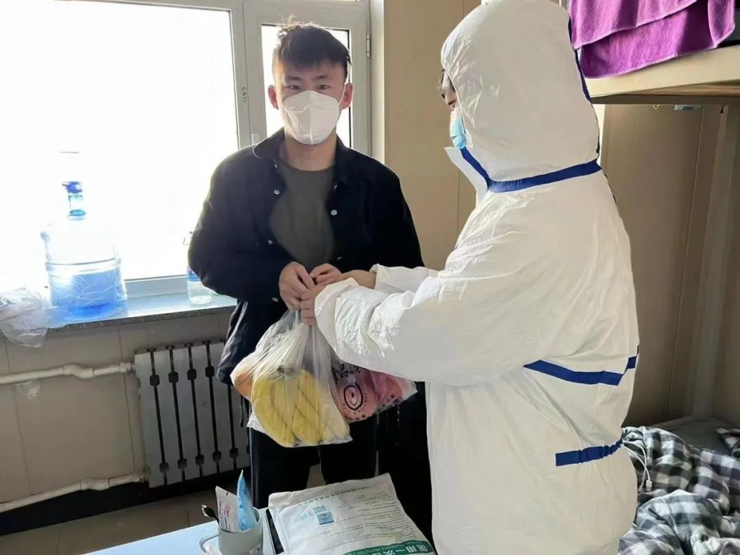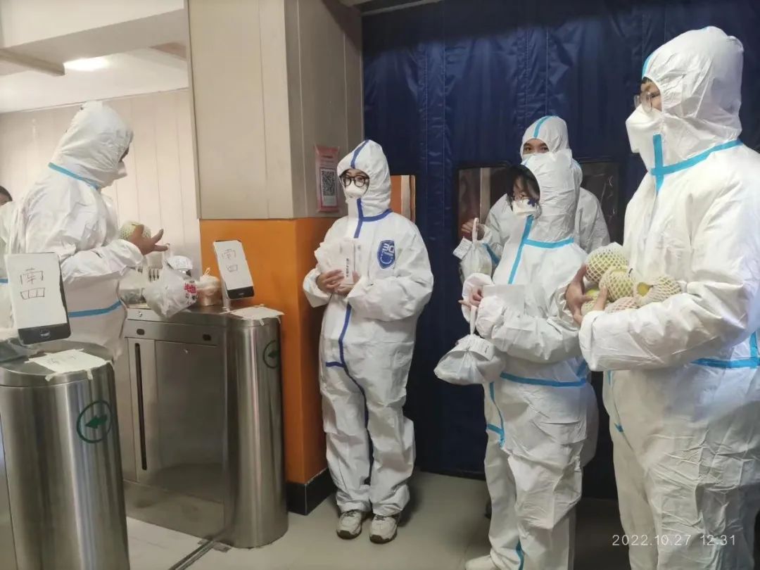 学生党支部党员、部分发展对象以及爱心联合会同学们穿戴好防护服和口罩,进入隔离楼,为学院正在隔离的同学送去了各种补给品,包括热水、饭菜水果等日常的必需品,此次志愿活动不仅为正在隔离的同学送去了物资,还送去了一份专属于今年会jinnianhuicom的温暖,充分的展现了今年会jinnianhuicom对学子的关怀。
