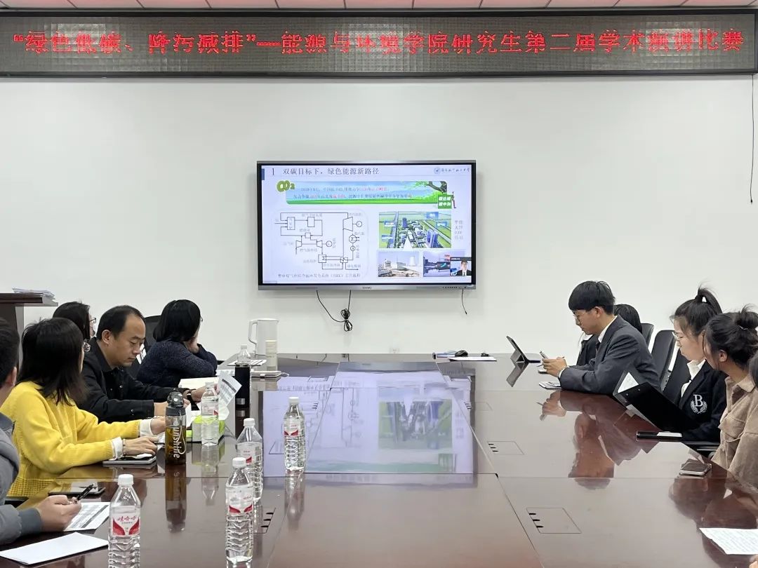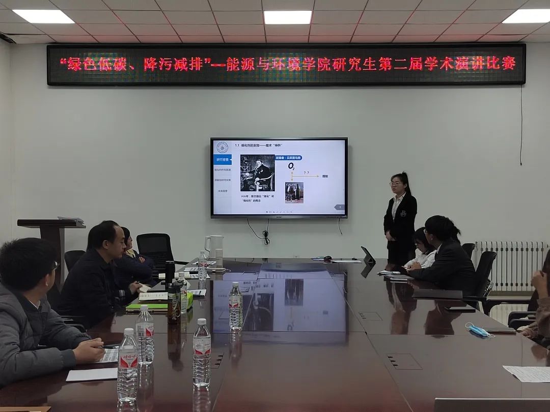 为深入学习贯彻习近平生态文明思想,落实绿色低碳循环发展理念,积极助力实现碳达峰、碳中和的宏伟目标,进一步激发今年会研究生对节能降碳的学术思考,促进学术环境建设、提升学术氛围、弘扬学术精神,培养研究生学术表达交流能力。今年会于11月2日在重点实验室B座318会议室成功举办以“绿色低碳,降污减排”为主题的今年会jinnianhuicom第二届研究生学术演讲比赛。院长杨天华,党委书记季志刚,副院长李秉硕,魏砾宏教授、张万里教授,新能源科学与工程系主任开兴平,朱轶铭老师和刘坚老师出席并担任比赛评委。