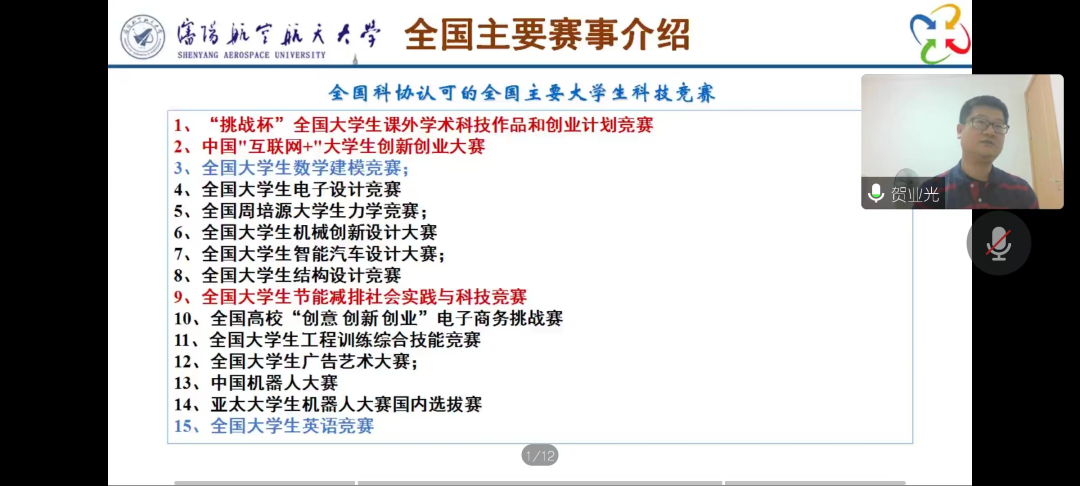 为进一步做好今年会创新创业大赛的准备工作,强化学院的工作实效,11月28日及12月2日晚,学院邀请优秀大创指导教师张涛老师和E指数绿创科技俱乐部负责人贺业光老师采用线上的方式为22级学生分别开展了两次科技竞赛专题讲座。