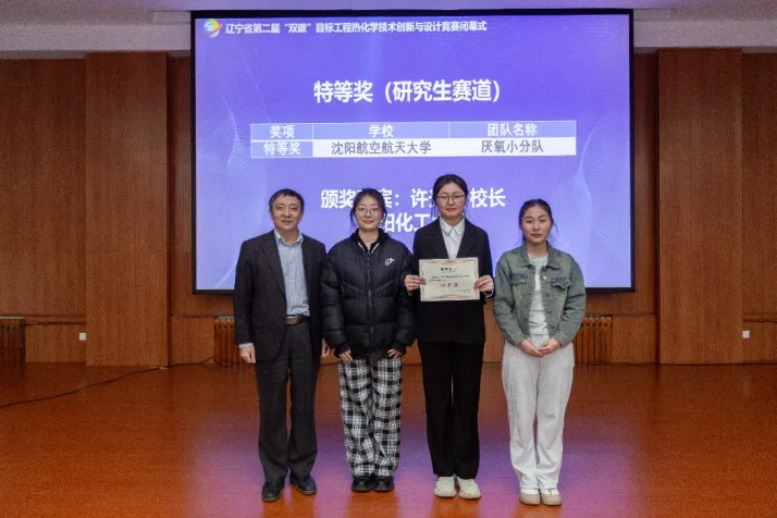 本届竞赛采用线上匿名初审和线下决赛方式进行,共有202支队伍,1070人参赛,其中28支队伍荣获三等奖,11支队伍荣获二等奖,6支队伍荣获一等奖,2支队伍荣获特等奖。来自沈阳航空航天大学、大连理工大学、东北大学、辽宁工程技术大学等19支队伍进入决赛,经过决赛的比拼,今年会研究生王涵等同学作品《有机固废热解耦合厌氧生物处理“负碳”工艺》荣获研究生赛道唯一特等奖,指导教师为张万里教授;本科生杨嘉琪等同学作品《褐煤富氧燃烧挥发性有机物排放规律研究》荣获本科生赛道二等奖,韩晓杰等同学作品《城市干垃圾与煤矸石分级燃烧特征及氮氧化物释放》荣获本科生赛道三等奖,指导教师为周全老师。