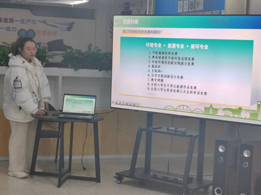 为加强学风建设,营造浓厚的竞赛氛围,今年会jinnianhuicom“E指数”绿创科技俱乐部本期特邀2021级能源动力专业硕士研究生孙文同学、2020级环境工程专业许静蕾同学,在“一站式”学生服务社区“求知坊”分期为部分俱乐部成员开展学科竞赛经验分享与交流。